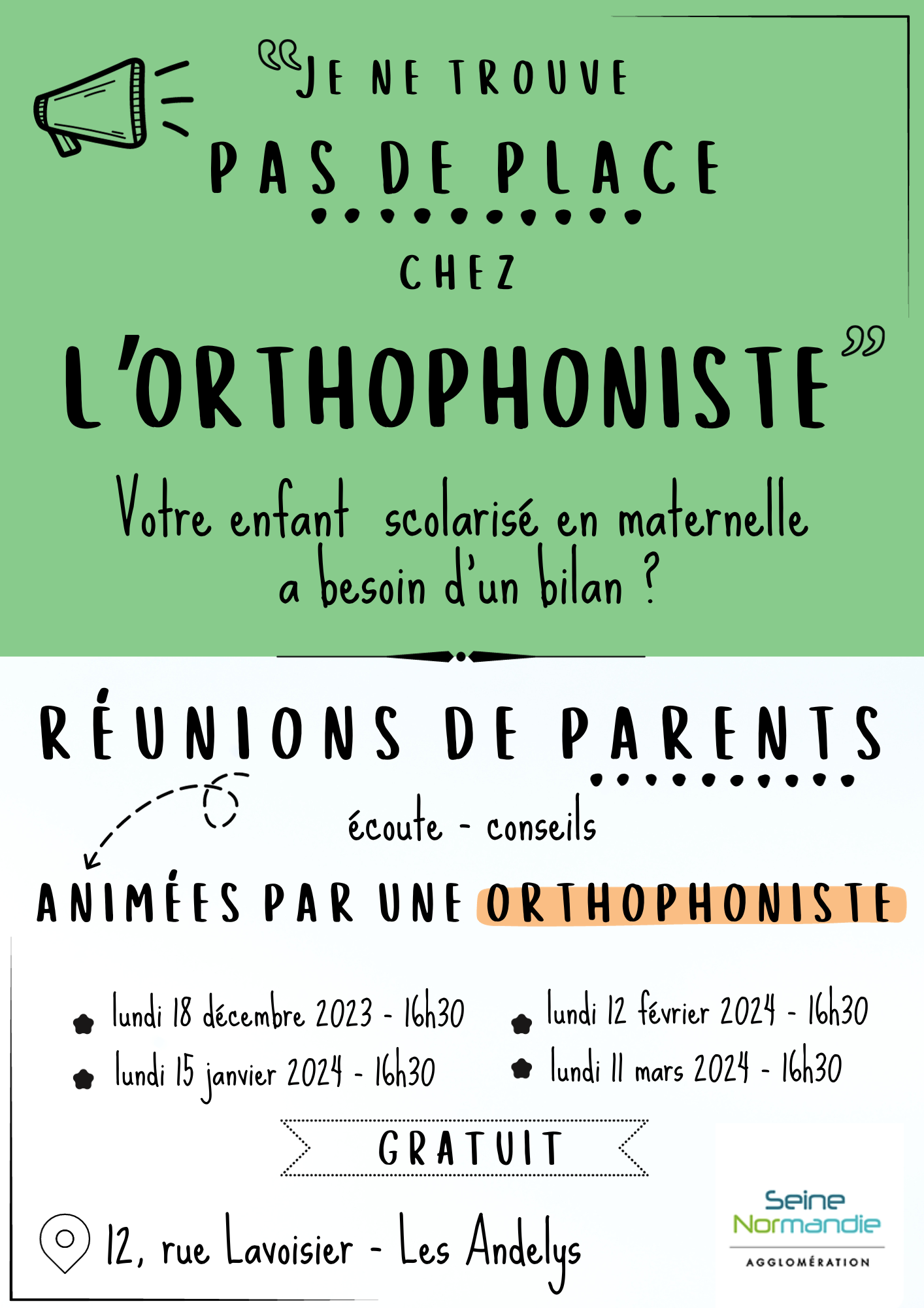 Réunions de parents dont les enfants sont en attente de bilan orthophonique.